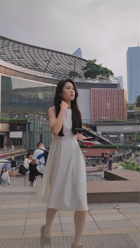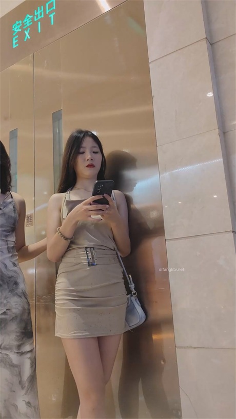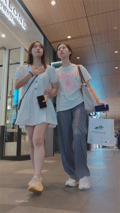 【KFC】大嘴少妇独自逛街买美妆❤️背影很顶吊带裙淡绿色内内